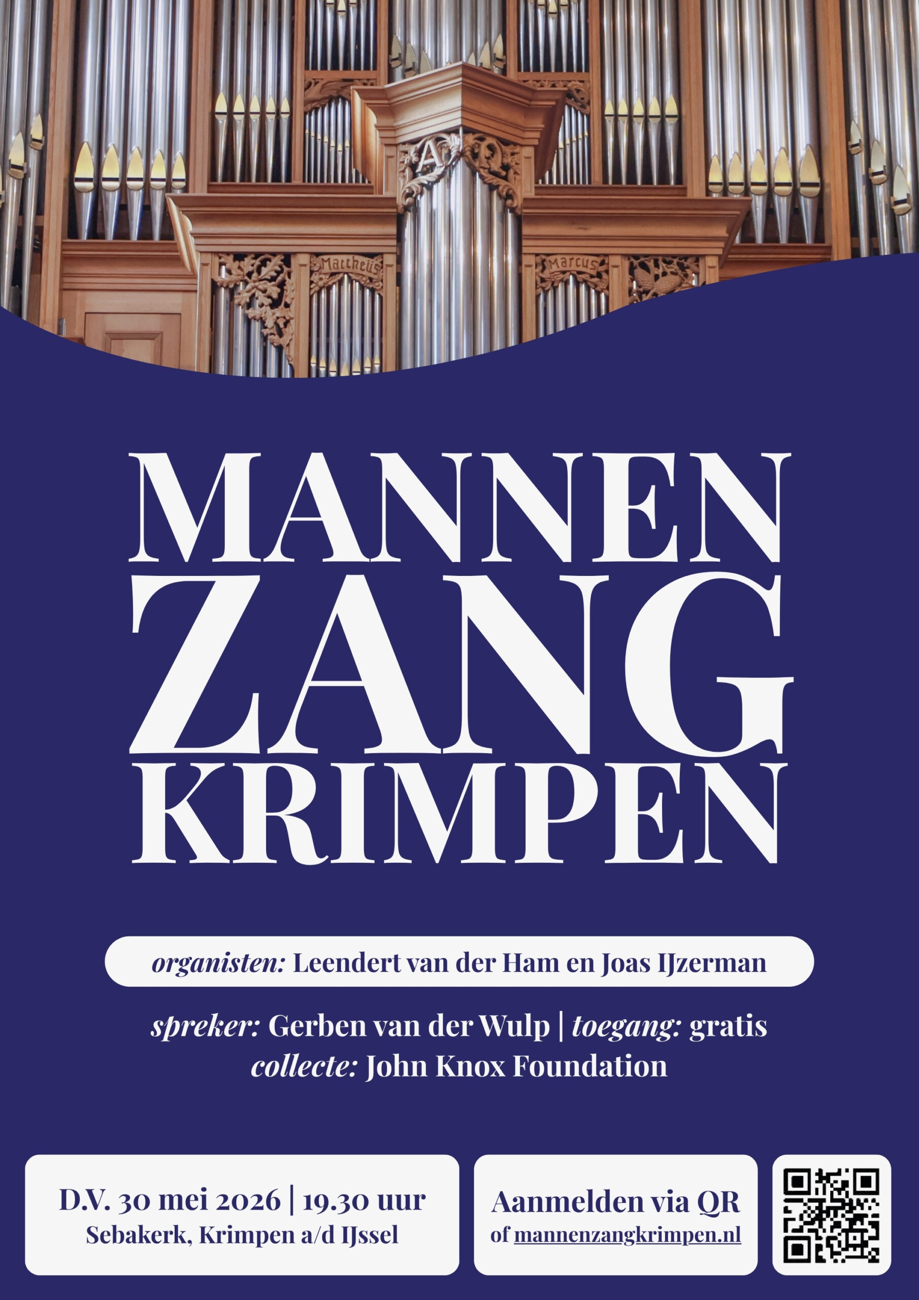 Op 30 Mei 2026 word er in de Sebakerk in Kimpen a/d IJssel een Mannenzang gehouden.